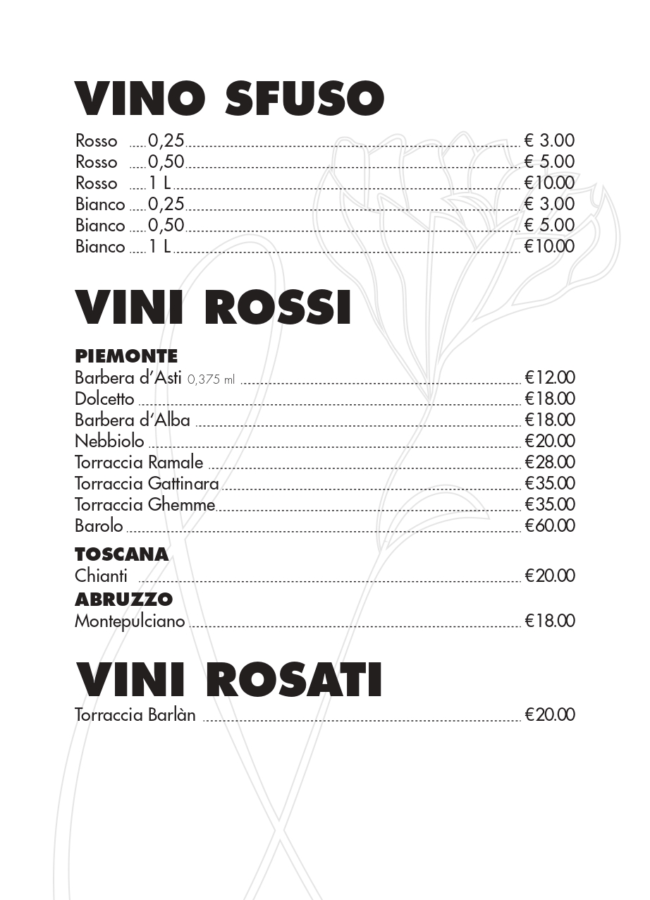 Menù alla carta