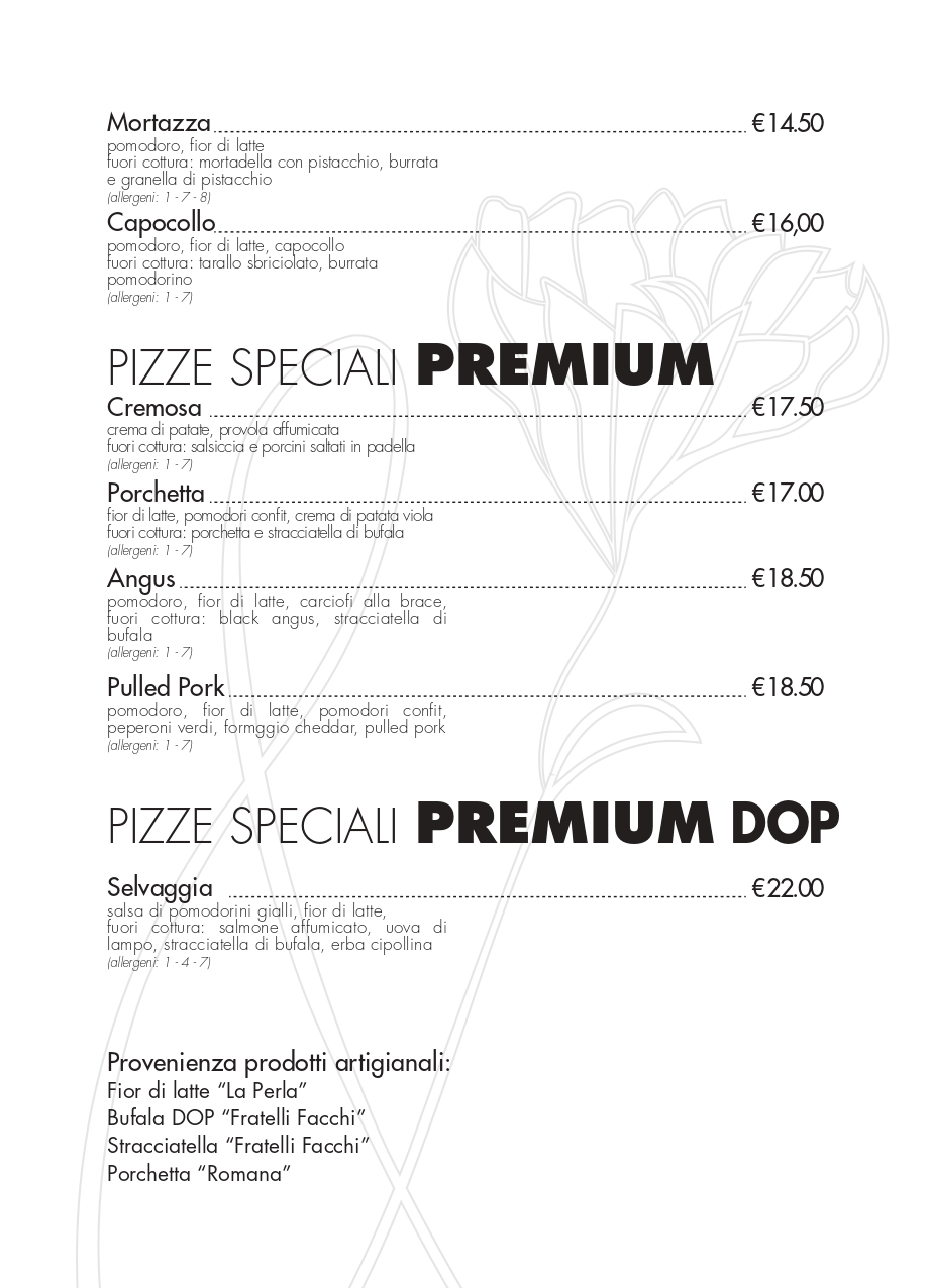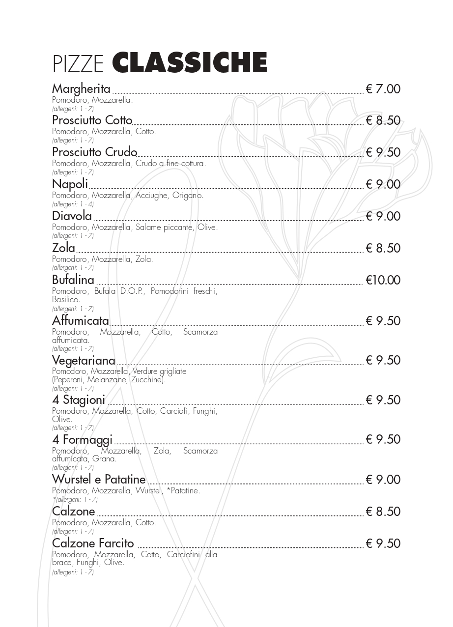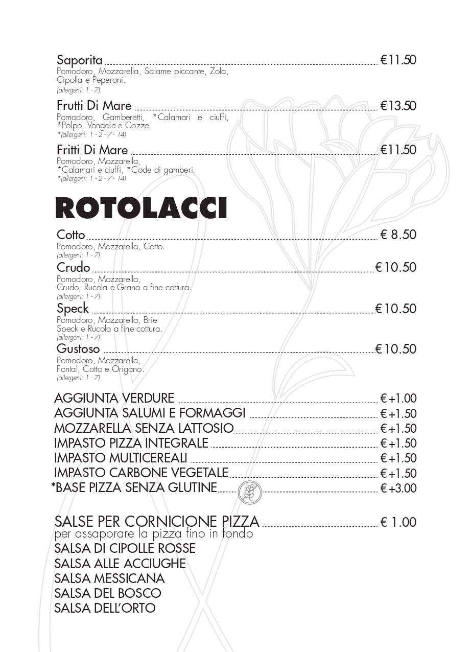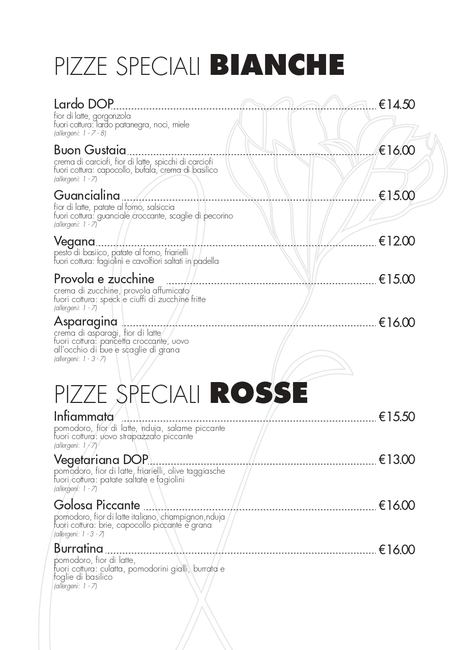 Menù pizzeria